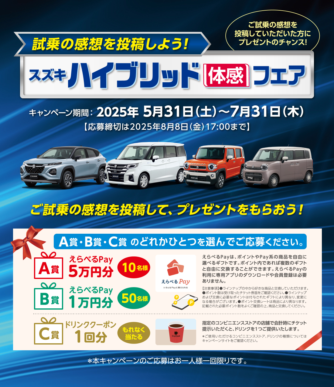 今ならハイブリッド車をご試乗で素敵なプレゼントが当たるキャンペーンもやってます!