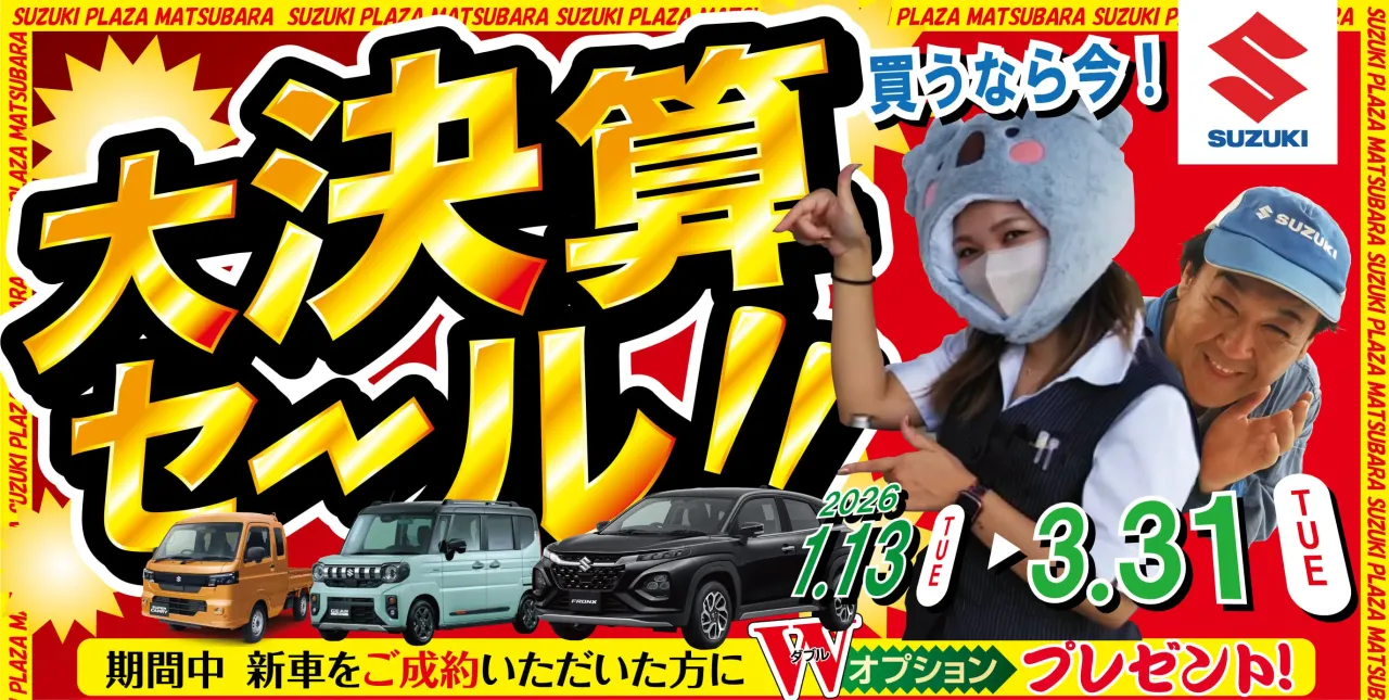 1月13日から3月31日の期間。 大変お得な大決算セールやってます!買うなら今!